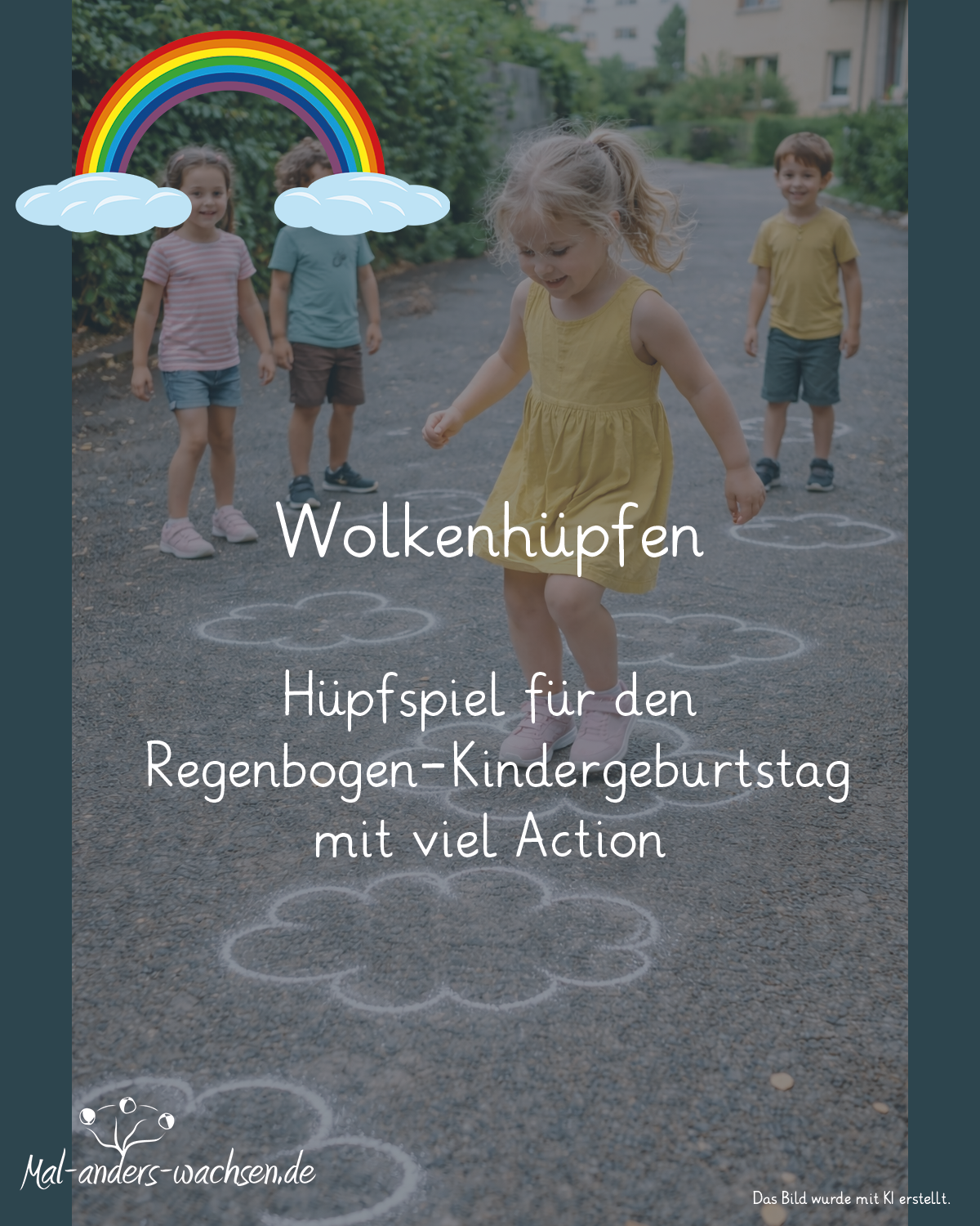 - Wolkenhüpfen. Hüpfspiel für den Regenbogen-Kindergeburtstag mit viel Action