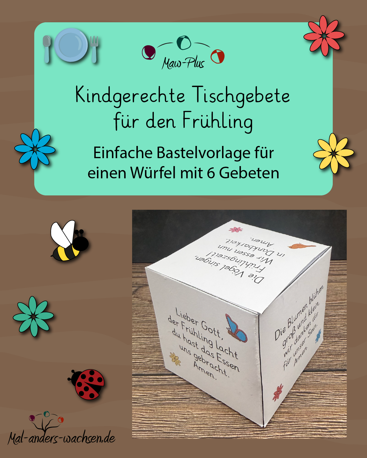 - PLUS. Kindgerechte Tischgebete für den Frühling – Einfache Bastelvorlage für einen Würfel mit 6 Gebeten
