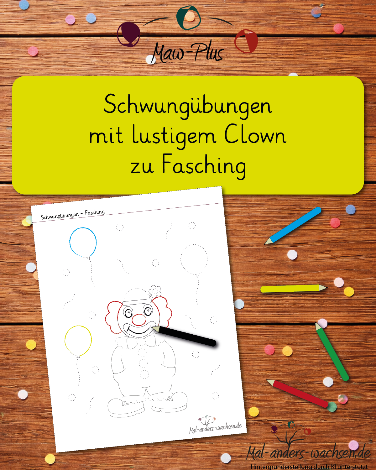 PLUS. Schwungübungen mit lustigem Clown zu Fasching