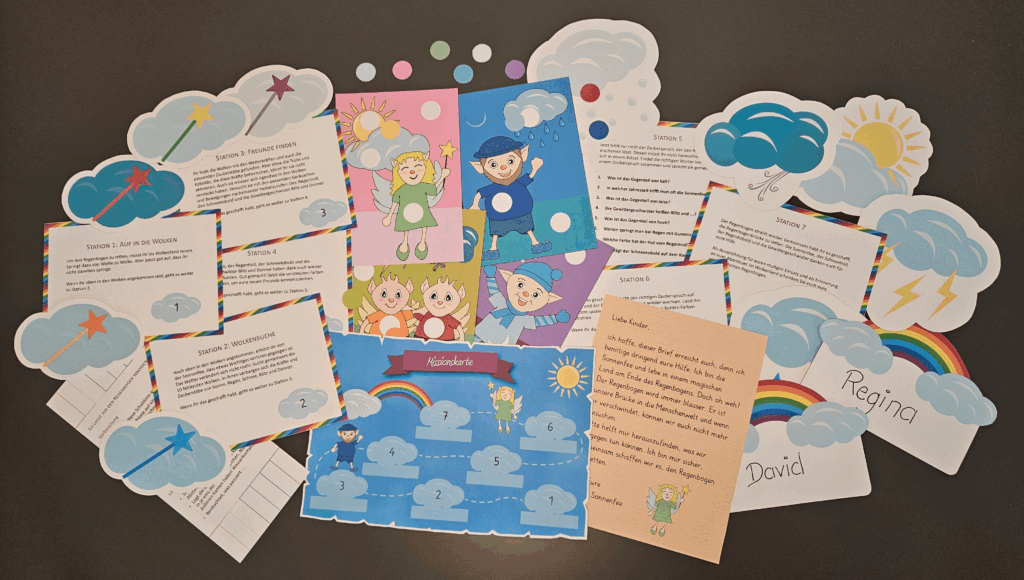 Diese Regenbogenschnitzeljagd ist speziell für Kinder im Vorschulalter konzipiert und die Aufgaben sind in eine liebevolle Geschichte eingebettet.