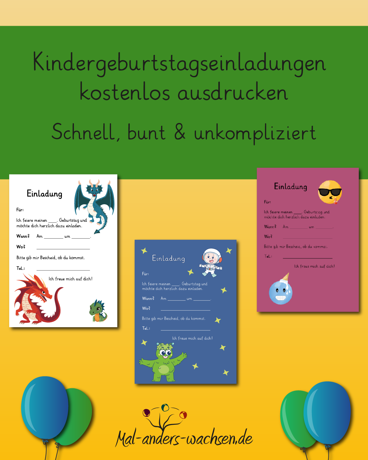 Kindergeburtstagseinladungen kostenlos ausdrucken. Schnell, bunt und unkompliziert