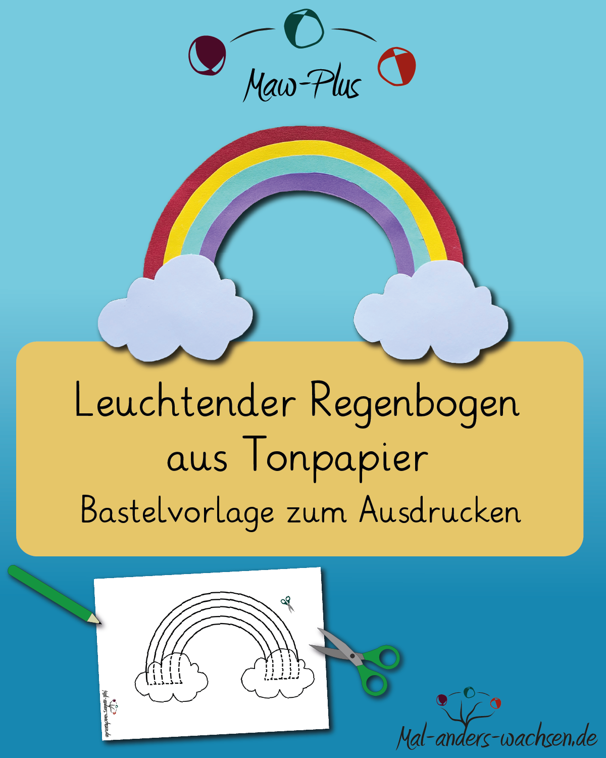 PLUS. Leuchtender Regenbogen aus Tonpapier. Bastelvorlage zum Ausdrucken