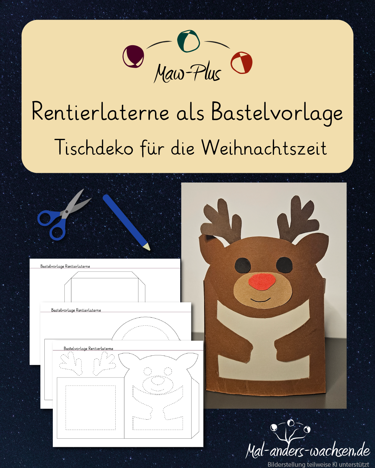 PLUS. Rentierlaterne als Bastelvorlage. Tischdeko für die Weihnachtszeit