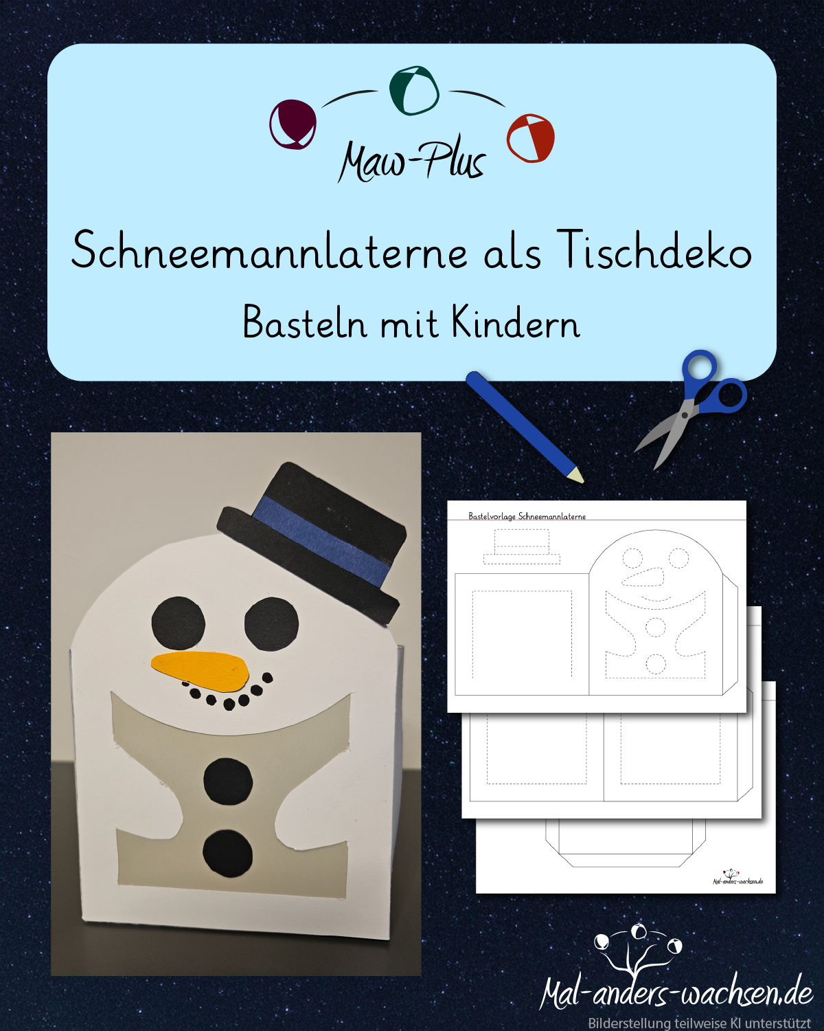 PLUS. Schneemannlaterne als Tischdeko. Basteln mit Kindern