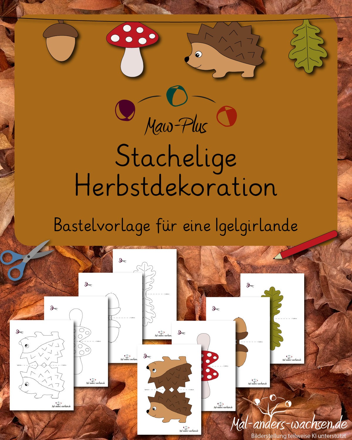 PLUS. Stachelige Herbstdekoration – Bastelvorlage für eine Igelgirlande