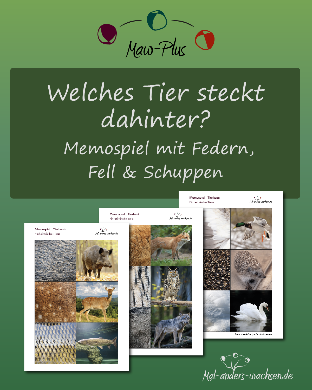 Tiere faszinieren Kinder auf ganz besondere Weise. Mit unserem Memospiel „Welches Tier steckt dahinter“ entdecken sie heimische Tiere einmal ganz anders. Die Karten zeigen Federn, Fell oder Schuppen und jeweils einmal das ganze Tier. Die Kinder vergleichen. Sie rätseln. Sie suchen Zusammenhänge. Dadurch wird nicht nur ihre Wahrnehmung geschärft. Sie lernen auch, genau hinzusehen und Unterschiede bewusst zu erkennen. Das stärkt Konzentration, Sprache und Wissen über die Natur.