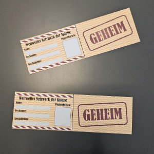Wir haben schon alles ausgearbeitet und es fehlen nur noch wenige Handgriffe sowie ein paar Dinge, die ihr wahrscheinlich schon zu Hause habt. Folgende Dinge werden zusätzlich benötigt: Drucker und Papier, Scheren, Klebestifte, Buntstifte, rote Wolle, Becher, durchsichtiges Klebeband, Schaschlikspieße oder Papierstrohhalme und eine Tasche mit Agentenmitgebseln.