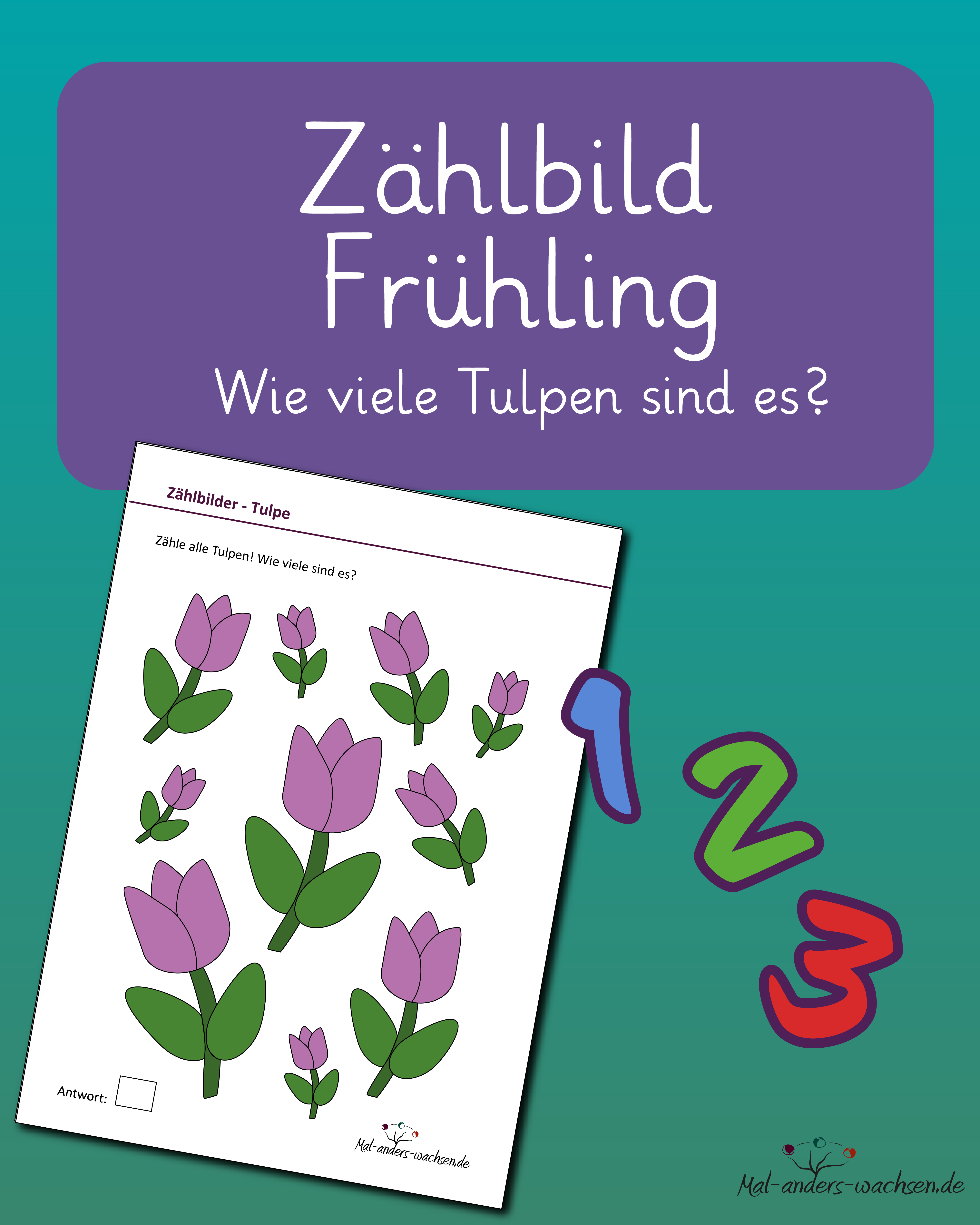 Zählbild Frühling – Wie viele Tulpen sind es?
