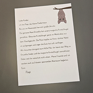Die gemeine Hexe Grusella hat die wertvolle Kristallkugel gestohlen. Nur die Kinder können sie zurückholen. Gemeinsam mit der frechen Fledermaus Flap, dem schlauen Raben Rumpel und der listigen Schlange Tika begeben sie sich auf eine spannende Mission durch den Hexenwald.