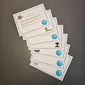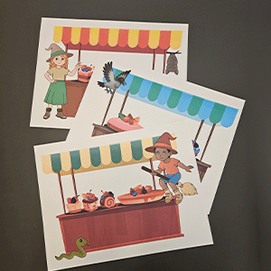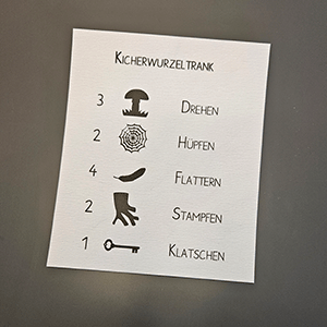 Alles ist bereits vorbereitet – du brauchst nur noch ein paar Materialien, die du wahrscheinlich schon zu Hause hast: Drucker und Papier, Scheren, Klebestifte, Stifte, Tonkarton, 1 Besen, 2 Briefumschläge DIN A4, Papier DIN A4, weiche Gegenständer (z.B. Kissen, Matten oder Decken).