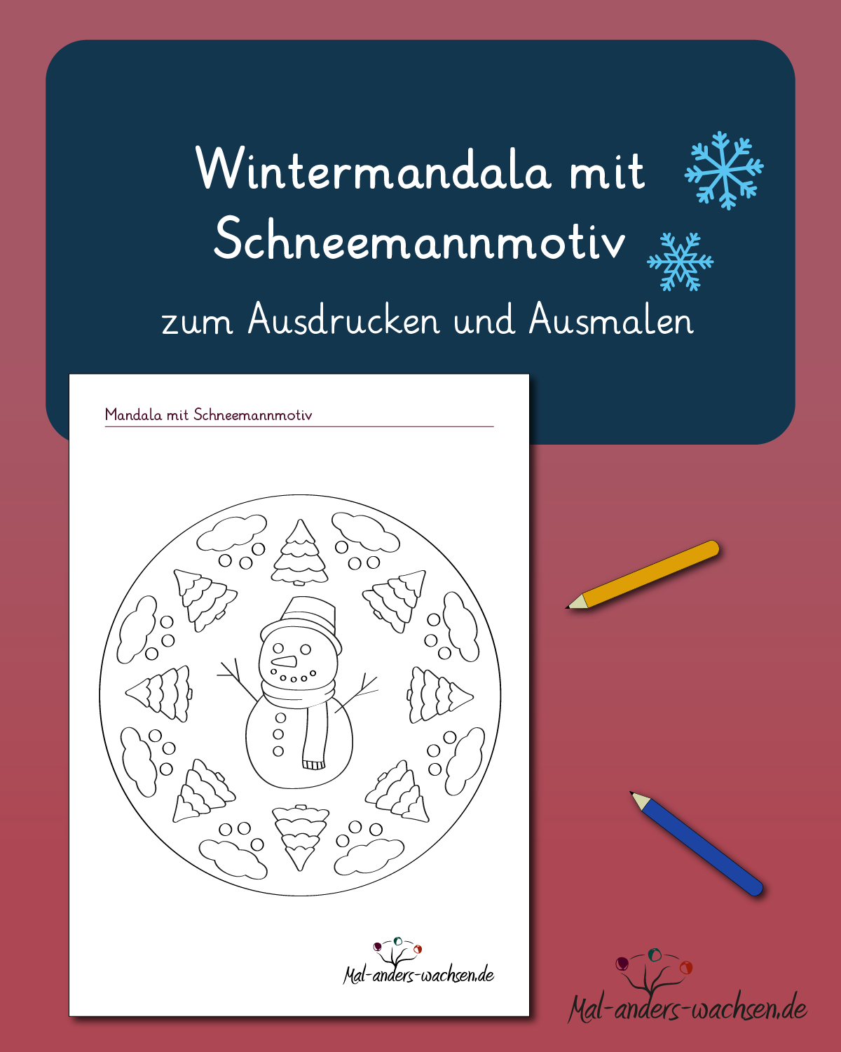 Wintermandala mit Schneemannmotiv zum Ausdrucken und Ausmalen